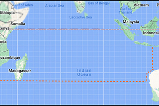 Sea Lanes and Navigation from Maputo Harbor to Bali, Indonesia